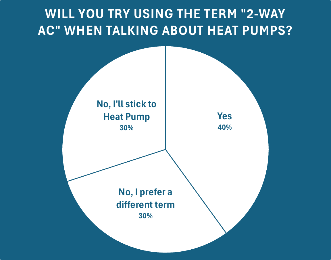 In the last issue of this newsletter, we suggested rebranding Heat Pumps as 2-Way ACs. With much of the general public unaware of heat pumps and how they work, could a new name increase awareness?