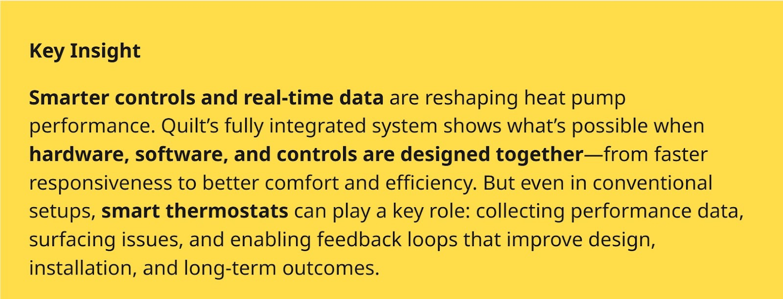 Quilt may be the gold-standard for a completely optimized, data-based system, but there is still plenty of room for improvements in all kinds of heat pump systems using a real-world, performance-based data approach.